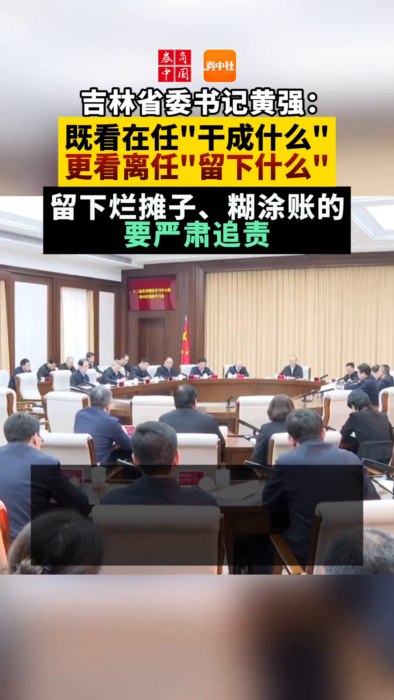 吉林省委书记黄强:既看在任“干成什么”,更看离任“留下什么”,留下烂摊子、糊涂账的要严肃追责