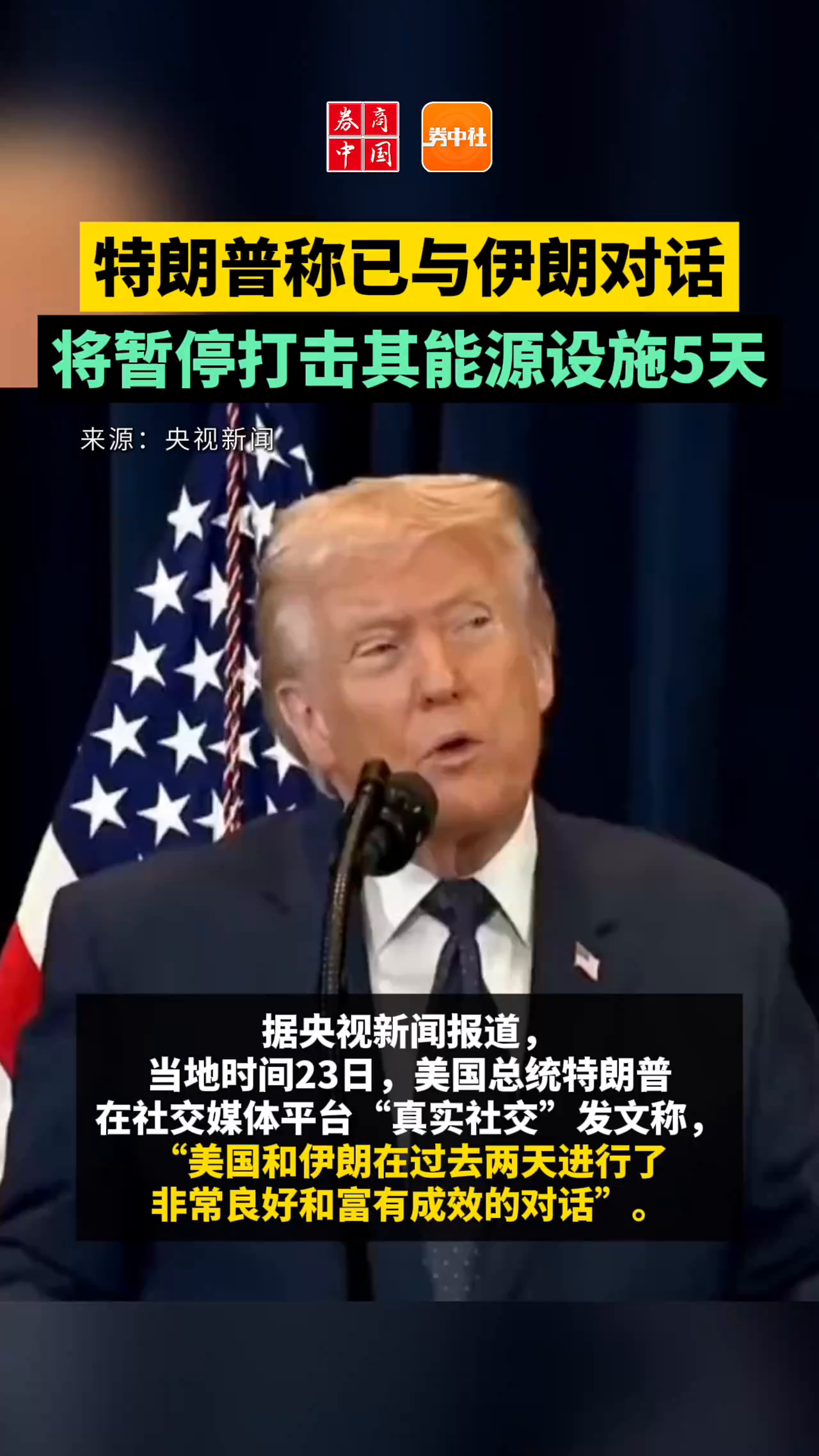 特朗普称已与伊朗对话 将暂停打击其能源设施5天