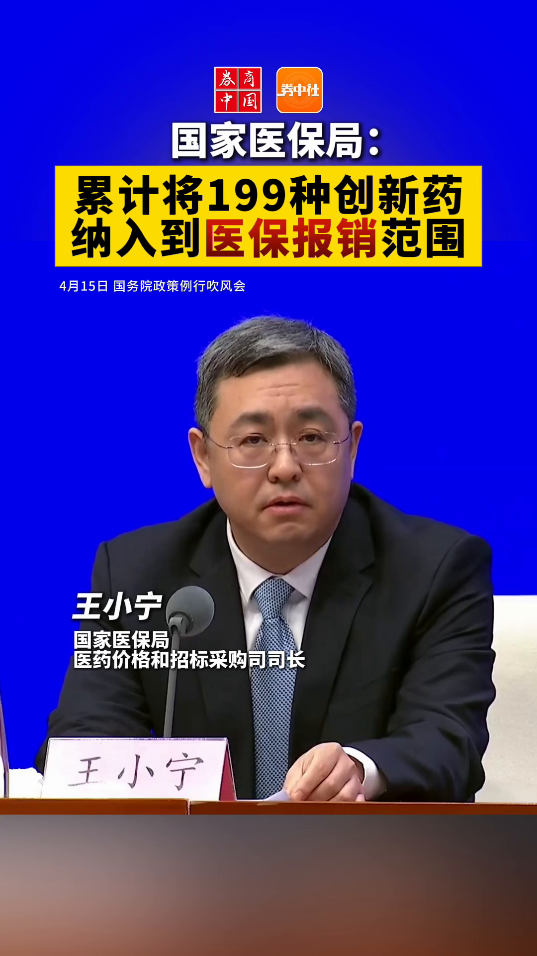 国家医保局:累计将199种创新药纳入到医保报销范围