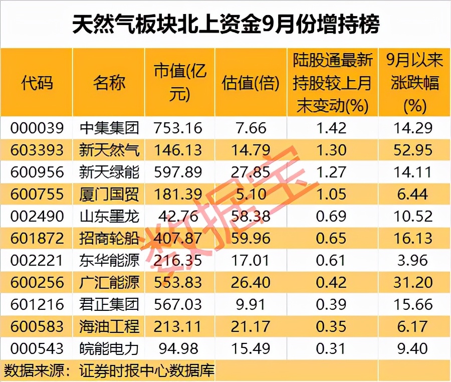 【摘要】天然气板块北上资金9月增持榜出炉。