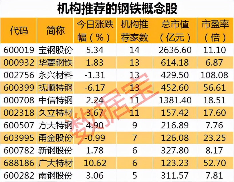 钢厂利润有望改善,机构对行业关注度随之提升。统计显示,11家钢铁行业上市公司获得了5家以上的机构推荐,宝钢股份、华菱钢铁、永兴材料、抚顺特钢的机构关注度居前。广发证券研报认为,限产与环保政策加速落地,钢铁供需趋紧,钢材价格趋强,焦炭、进口矿价格分别偏强、偏弱,钢材盈利有望增强,估值有望提升。