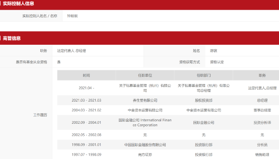基金业协会信息显示,关子私募基金的总经理陈镔,具有20多年的金融从业经验,曾经在南方证券、中金公司等机构工作过;2004年3月他加入中金资本运营有限公司担任董事总经理,直到今年2月离开;随后今年3月,陈镔出任养生堂有限公司股权投资部总经理,关子私募基金管理(杭州)有限公司成立后他担任法定代表人、总经理。