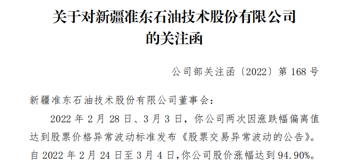 在股价连续上涨之后,准油股份于3月4日收到了深交所下发的关注函。