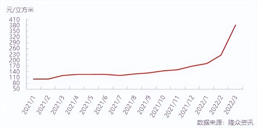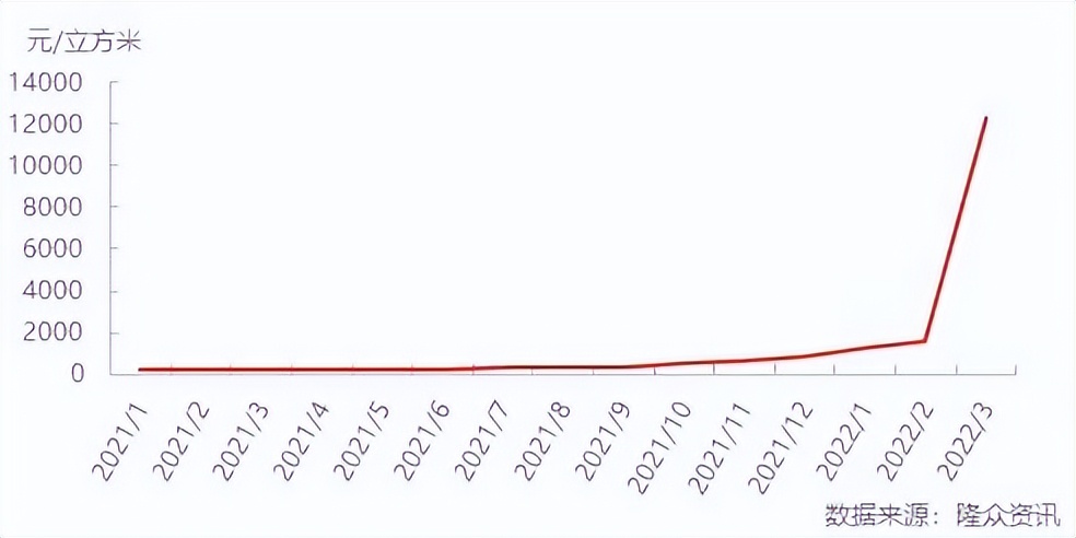 据记者了解,俄乌开战前中国氖气价格达到1600-2100元/立方米左右,战事打响后,氖气迅速上涨,有厂商一度暂停对外报价,有的厂商对外报价也一度超过2万元/立方米,比去年低位最高上涨约50倍,出现“比特币”式疯狂。