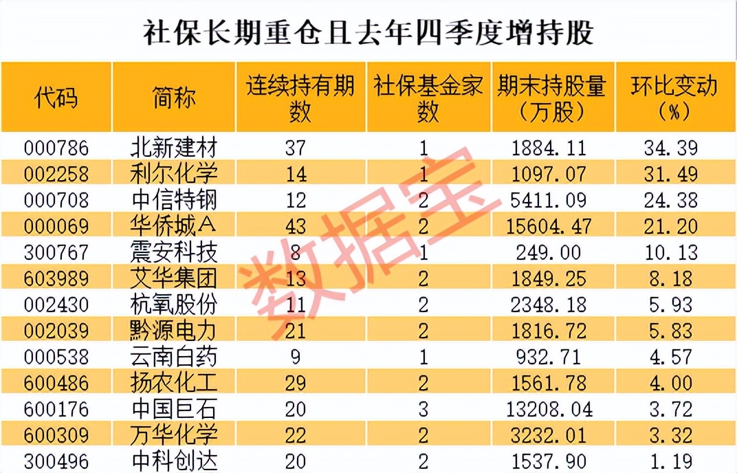 据此,数据宝统计了社保基金最新持股动向以及长线重仓股,以飨读者。