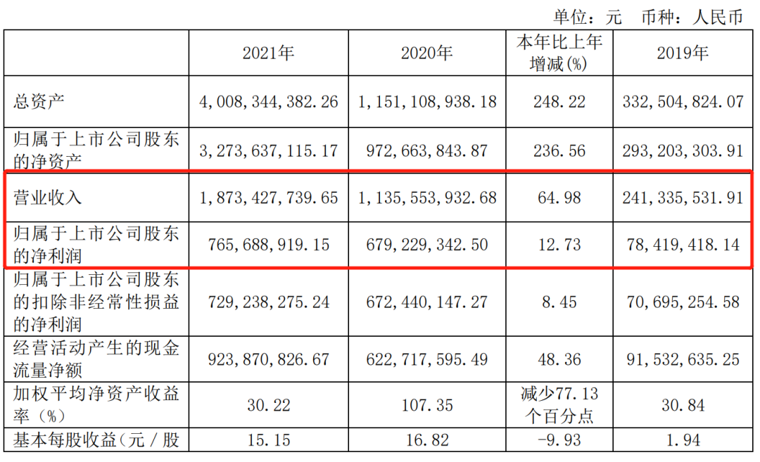 另一家同行业公司奥泰生物(688606)公告称,公司2021年全年营收18.73亿元,同比增长64.98%;归母净利润7.66亿元,同比增长12.73%。