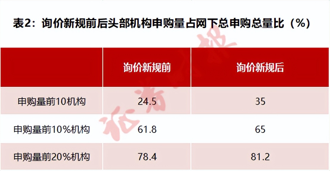 询价新规实施后,平均参与新股询价的机构为401家,减少约20%,今年4月以来更是下降至305家,退出询价的机构多为申购规模不大的C类投资者,这进一步引发了定价话语权向头部机构集中的趋势。