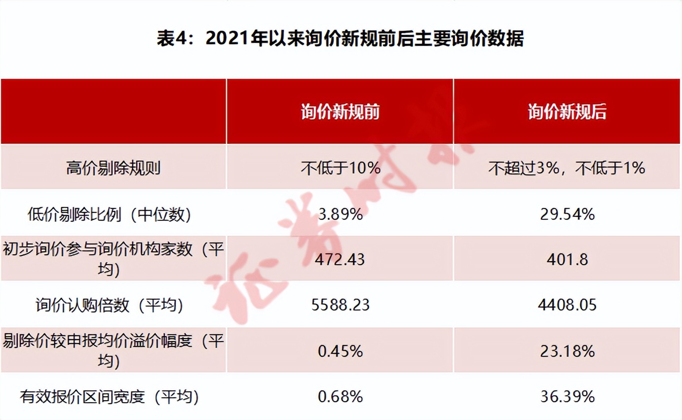 在询价新规扭转了“合谋报价”等不规范行为后,小机构定价能力短板暴露,为延续“博入围策略”,出现了大量偏离正常值的高报价。