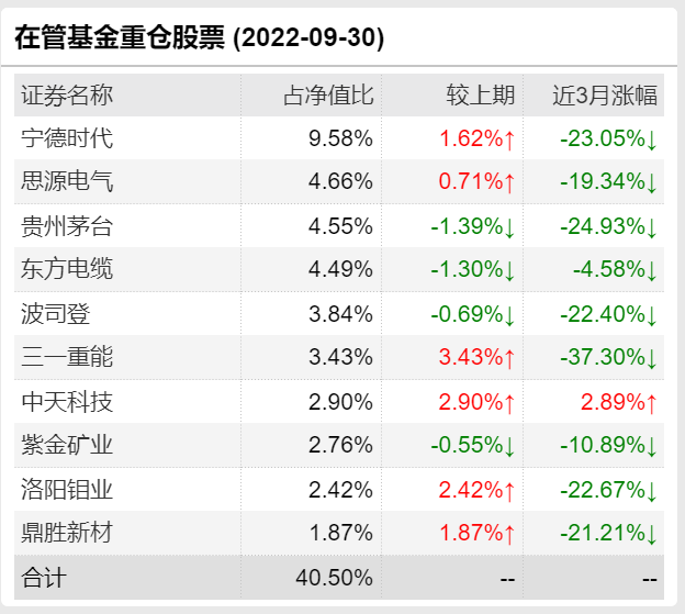 从重仓股票来看,最新持仓与二季度相差不大,只是持股比例上有所调整。比如加仓三环集团、中航高科,小幅减仓舍得酒业。